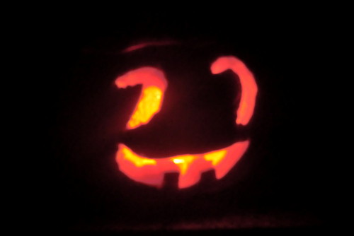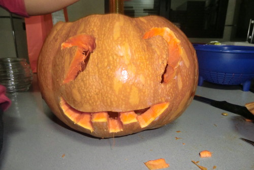 Fizemos uma abóbora toda castiça, para pormos na entrada da casa.
