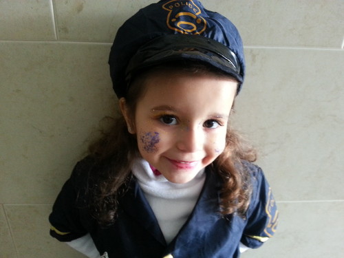 Queria pôr brilhantes, apesar de eu lhe disser que os polícias não andam com brilhantes mas nós estamos aqui é para fazer a criançada feliz certo?