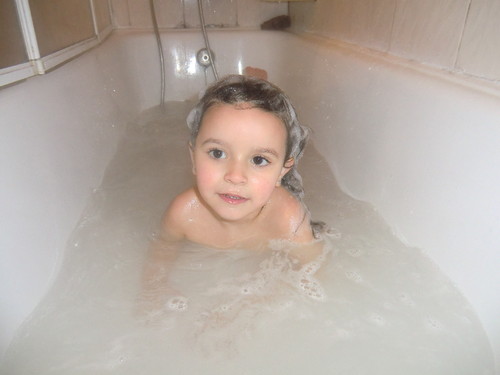 A tomar uma banhoca na banheira da avó para ficar ainda mais lindona.
