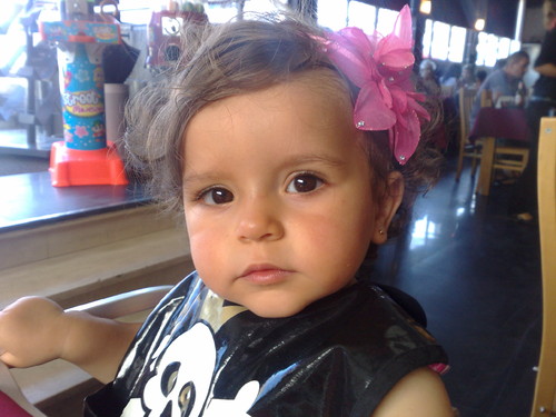 E já que não tinhamos ido à natação antecipámos a comemoração dos 7 meses da migalha, e fomos furar as orelhas à piquena, eu não consegui agarrá-la, teve que ser o papá e no fim eu chorei mais que ela.