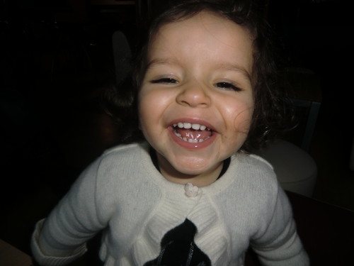 Já tem um dentinho, foi descoberto pela pediatra. Bah!! Eu e o papá andávamos sempre a espreitar mas deixámos escapar a descoberta.