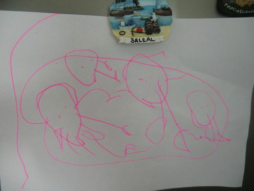 Carlotita resolveu fazer um retrato de família, onde consta o papá, a mamã. ela e o bebé.