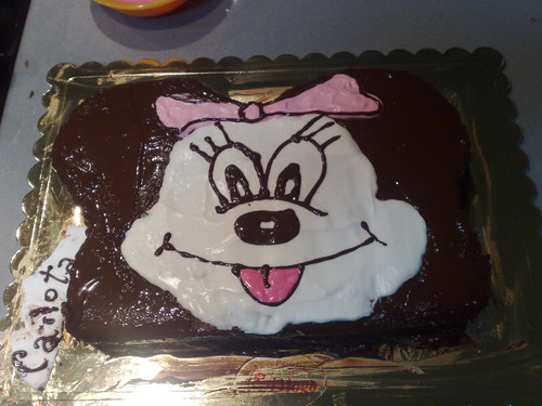 Mas o nariz da Minnie teve um acidente no caminho para casa, e o bolo não estava nada de especial.