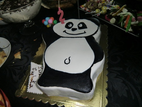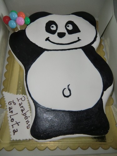 O bolinho da festinha foi feito por um profissional. A piolhita adorou o Panda.