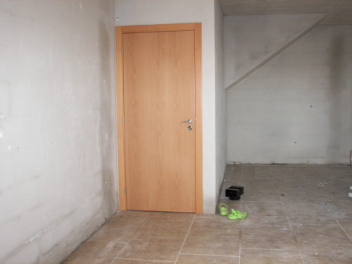 Esta é a porta da cave que dá acesso ao palacete, hihihi, naquela parede vai estar um armário para colocar os sapatos, depois eu mostro a antes e o depois.