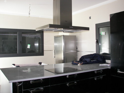 Da casa: ainda não tirei fotos à cozinha, porque não tem a pedra. Mas vai ser dificil de a ter, porque com este tempinho da caca, é impossível fazer os arranjos exteriores, para poder fazer o acesso principal, logo não conseguem descarregar a pedra. Acho que vou tirar foto mesmo sem a pedra.