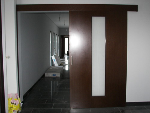 A porta de correr que dá acesso à zona dormitória. Ficou impecável.