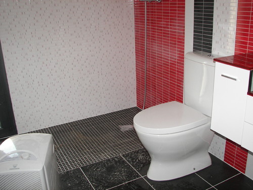 O prometido é devido e aqui fica a imagem da parede da casa de banho de serviço. A minha coqueluche nos azulejos são estas peças pretas, foram caríssimas. mas são tão uindas!!