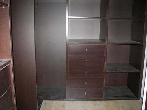 Uma das paredes do closet, não liguem ao pó, ainda não fiz as limpezas acho que só faço no final.
