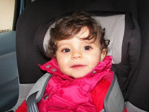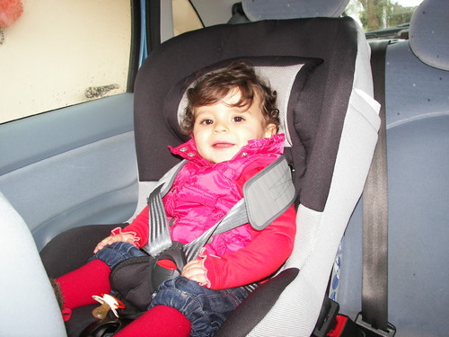A semana passada fomos ao Leiriashopping, mais propriamente à loja da Chicco comprar a cadeirinha para o automóvel, para aproveitar aa prendinha do natal do avô Tó, e o desconto de 20% em tudo. Está porreirrinho, mas nada de extraordinário, já fazia falta um sítio assim na capital do distrito. A piolha adora andar na cadeirinha virada para a frente, até nos chama para mostrar o contente que está.